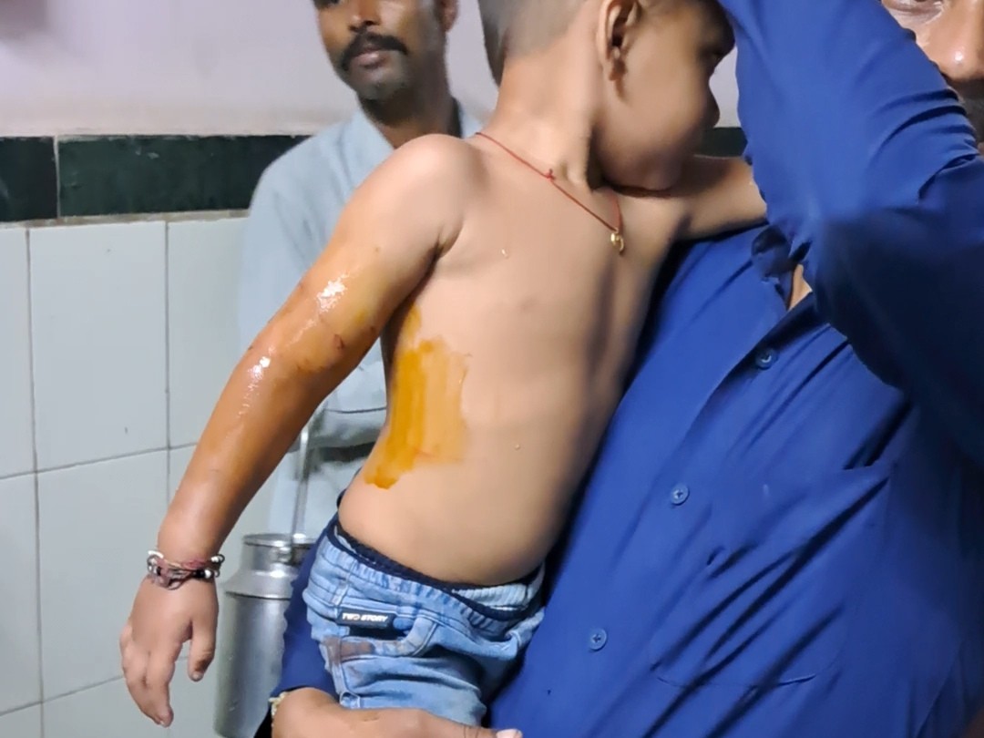 बच्चे की आंख के पास कुत्ते ने काटा है।
