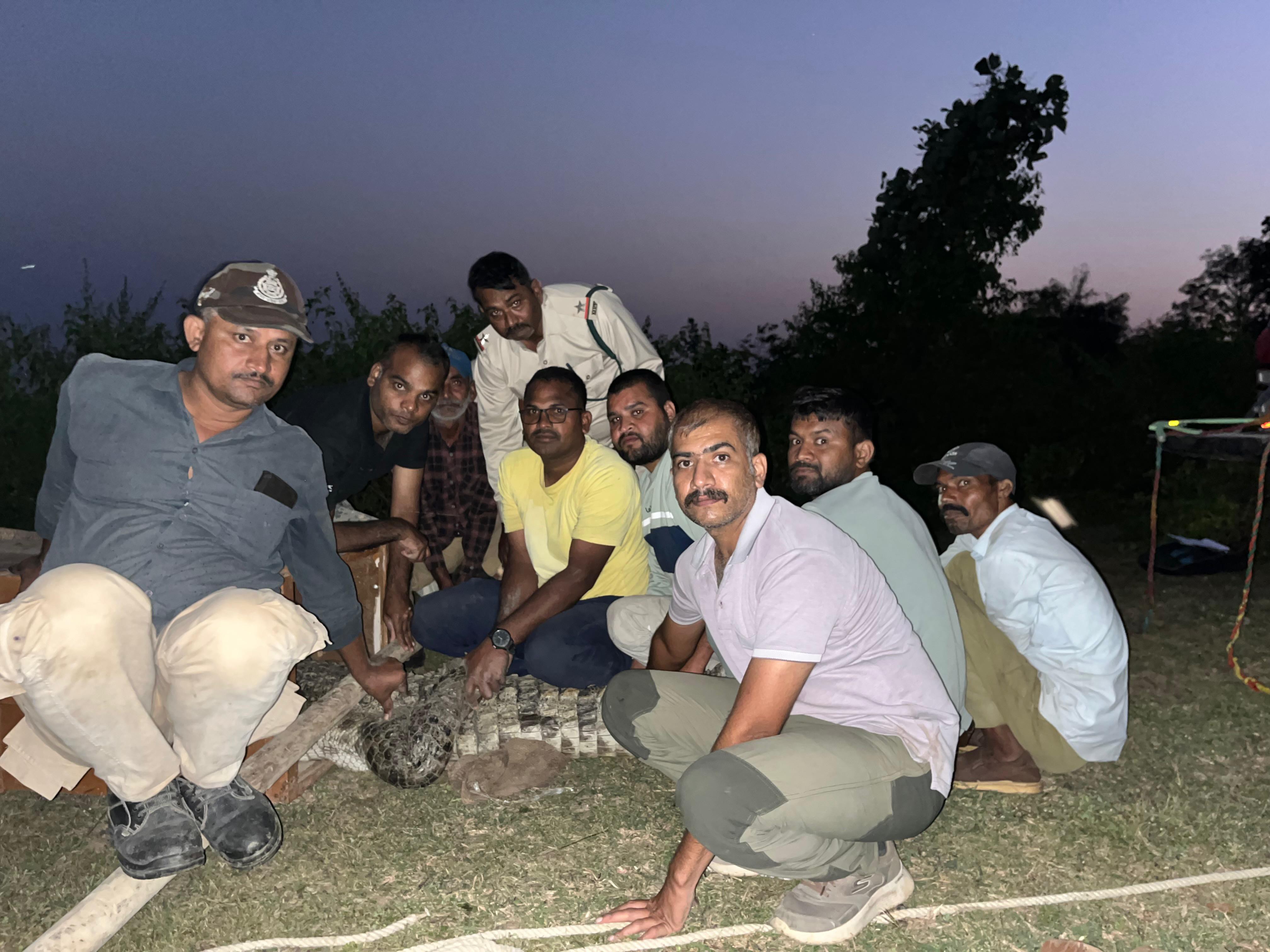 एक ग्रामीण ने अपने खेत में मगरमच्छ देखा, जिसके बाद उसने तुरंत वन विभाग को सूचना दी। मगरमच्छ का वजन 150 किलो से अधिक बताया गया है।