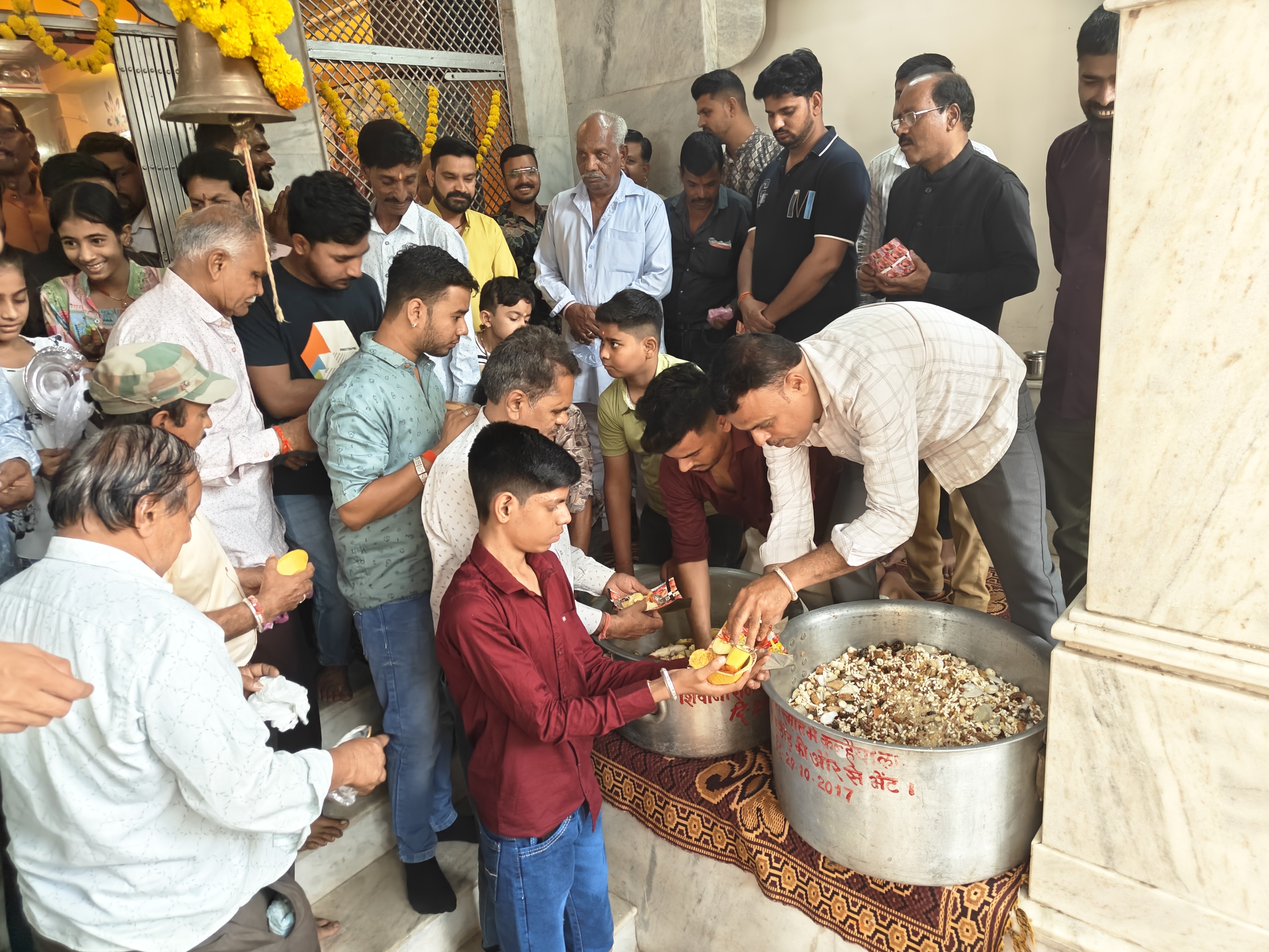 छप्पन भोग अर्पित करने के बाद समाज के अध्यक्ष शंकरलाल राठौड़, उपाध्यक्ष दीपक राठौड़ और कोषाध्यक्ष दिलीप राठौड़ ने सर्वप्रथम आरती उतारी। इस दौरान समाज के वरिष्ठ सदस्य भी उपस्थित रहे। आरती के बाद मंदिर परिसर में उपस्थित सभी समाजजनों में छप्पन भोग की प्रसादी का वितरण किया।