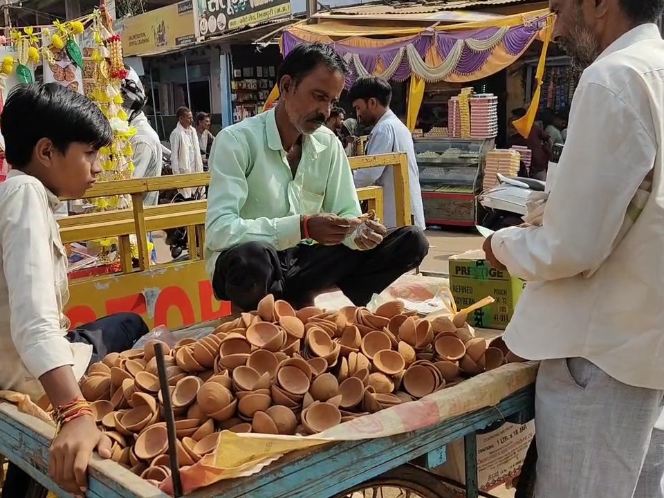 दीपावली पूजा की तैयारियों के लिए झालर, माला, कमल पुष्प, दीये, मनमंदिर सजावट और अन्य पूजन सामग्री की जोरदार खरीदारी की गई।