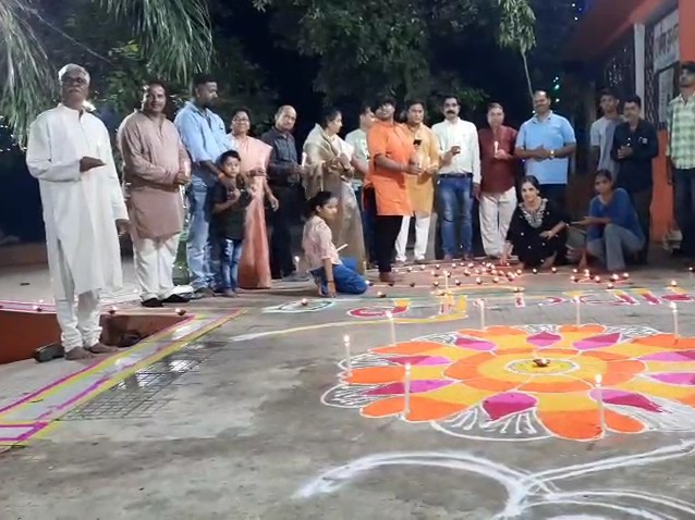 मुक्तिधाम परिसर को आकर्षक रंगोली और दीपों की श्रृंखला से सजाया गया था। इस सजावट में मातृशक्ति की महत्वपूर्ण भूमिका रही, जिन्होंने रंग-बिरंगी रंगोलियों से परिसर को सुंदरता प्रदान की।
