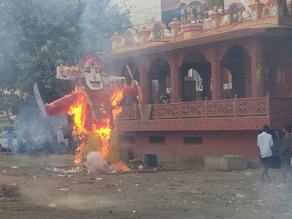 इस अवसर पर लगभग 15 फीट ऊंचा रावण का पुतला बनाया गया था। मोहल्ले के हनुमान मंदिर चौराहे पर हनुमान मंदिर समिति के सदस्यों ने विधि-विधान से इसका दहन किया।