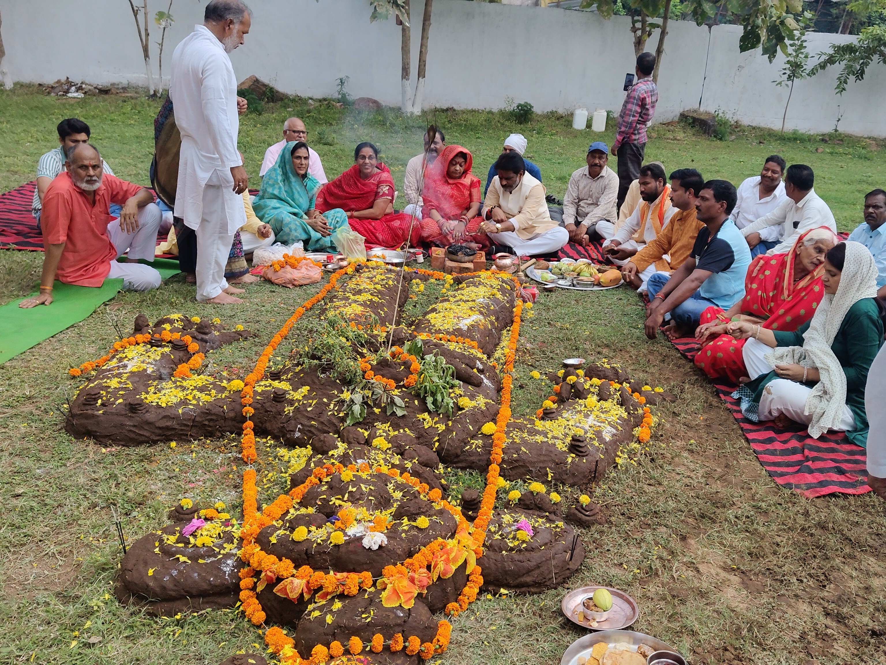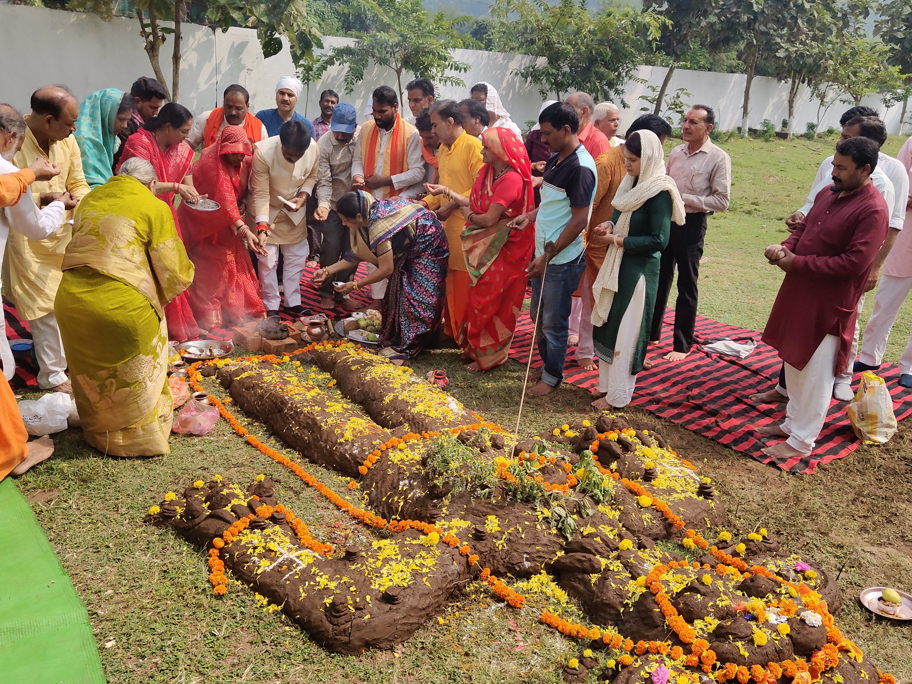 पूजा के दौरान गोवर्धन की परिक्रमा की गई, आरती उतारी गई और हवन में आहुतियां दी गईं। इसके पश्चात गौशाला में मौजूद गायों की भी विशेष पूजा-अर्चना की गई।