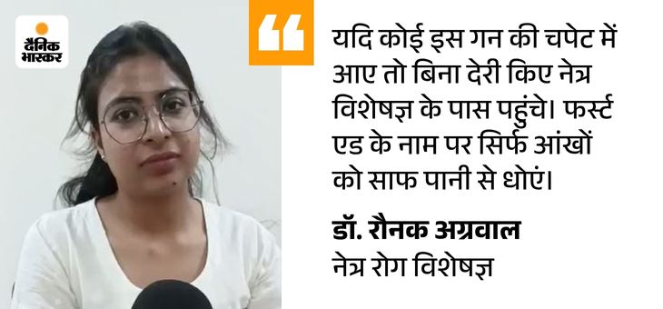 डॉ. रौनक अग्रवाल ने बताया कि यदि किसी व्यक्ति की आंख में इस गन के कारण चोट लगे, तो उसे आंख रगड़नी नहीं चाहिए। ऐसा करने से कार्बाइड के कण अंदर घुस जाते हैं, जिससे स्थायी नुकसान हो सकता है। इसमें सबसे बड़ा खतरा कॉर्निया के क्षतिग्रस्त होने का है। कई केस में इमरजेंसी सर्जरी ही विकल्प बनती है। यदि कोई इस गन की चपेट में आए तो ना हाथ लगाएं और ना आंख साफ करने का प्रयास करें।