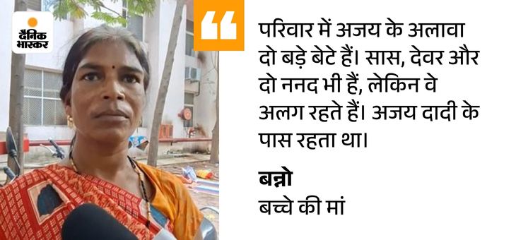 मां बन्नो ने बताया कि मुझे नहीं मालूम था कि बेटा अजय इतनी गंभीर हालत में है और उसे किडनी की बीमारी है। जब वह ढाई महीने पहले इंदौर से बाहर गई थी, तब उसकी हालत अच्छी थी। जब पूछा गया कि फिर दादी और परिवार ने उसे क्यों नहीं ढूंढा, तो बन्नो ने साफ कहा कि उन्हें नहीं पता कि उन्होंने ऐसा क्यों नहीं किया। वहां देवर और ननद के परिवार भी अलग-अलग रहते हैं। फिलहाल, वह अपनी देखभाल कर रही हैं।