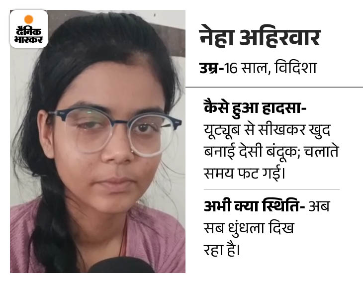 नेहा ने कहा कि अचानक आंखों के आगे अंधेरा छा गया। पहले से ही बांई आंख कमजोर थी, उस दिन चश्मा नहीं पहना था। अब सब धुंधला दिख रहा है। मैं डॉक्टर बनकर लोगों की आंखों की रोशनी लौटाना चाहती थी, लेकिन अब खुद अपनी रोशनी के लिए तरस रही हूं।