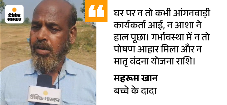 परिजनों ने बताया कि गर्भावस्था के दौरान उन्हें आंगनवाड़ी केंद्र से पोषण आहार नहीं मिला और आशा कार्यकर्ता कभी घर नहीं आई। जननी सुरक्षा योजना की राशि मिली, लेकिन मातृ वंदना की राशि अब तक नहीं दी गई।