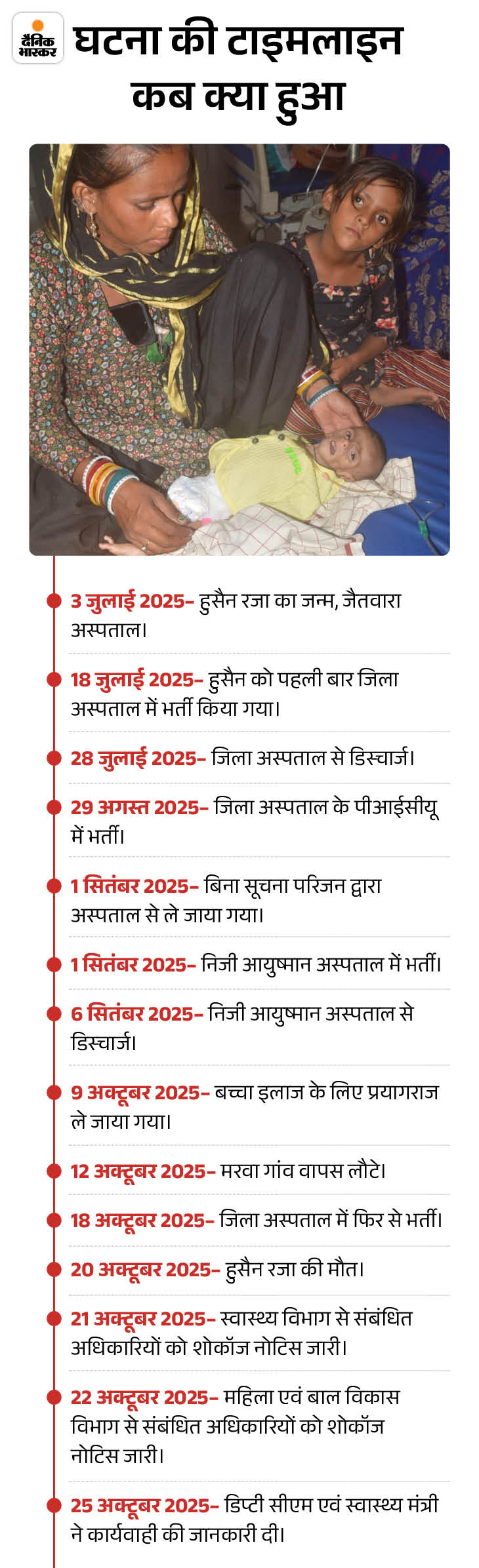 दैनिक भास्कर से बातचीत में परिजनों ने बताया कि जन्म के बाद 10 दिन में ही हुसैन बीमार पड़ा। परिजन पहले जैतवारा, फिर जिला अस्पताल, उसके बाद आयुष्मान और निजी अस्पतालों में इलाज कराते रहे।