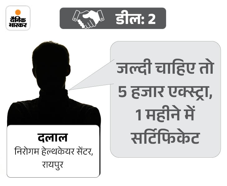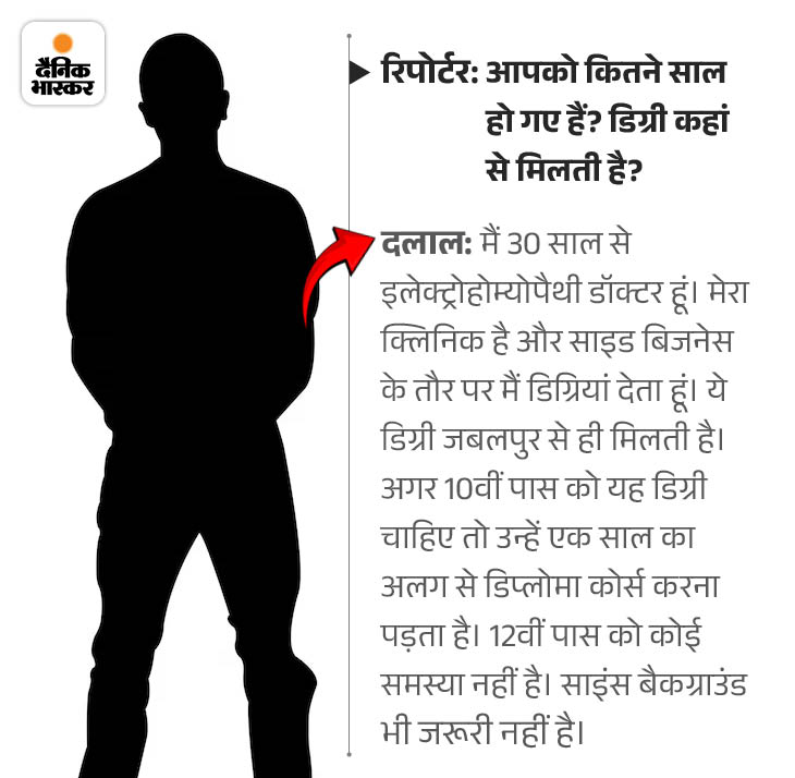 • दलाल: इससे जल्दी चाहिए तो 5 हजार और लगेंगे, आपको एक महीने में सर्टिफिकेट दे देंगे। मगर, इस बात की जवाबदारी आपकी रहेगी कि जिसे हम डिग्री दे रहे हैं उसे थोड़ा बहुत मेडिकल का नॉलेज होना चाहिए। जिसके पास एक्सपीरियंस रहता है उसे बैकडेट में या शॉर्टकट में डिग्री दे देते हैं।