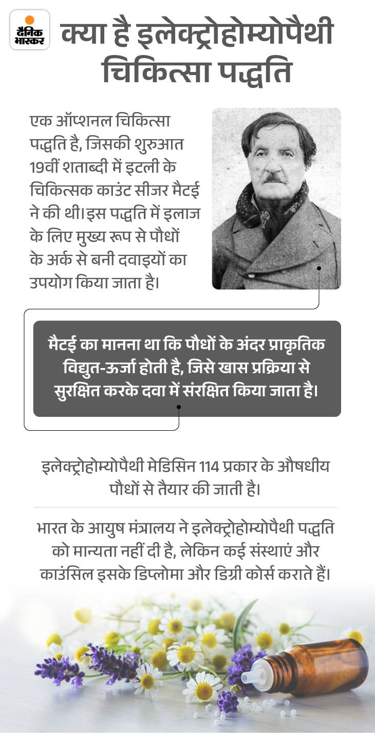 एमपी में इलेक्ट्रोहोम्योपैथी चिकित्सा पद्धति को मान्यता नहीं है। इस डिग्री को हासिल करने वाले लोग न तो खुद के नाम के आगे डॉक्टर लिख सकते हैं और न ही इलाज कर सकते हैं, लेकिन हकीकत ये है कि बाकायदा इनके क्लिनिक खुले हैं और ये मरीजों को कैप्सूल, गोलियां
