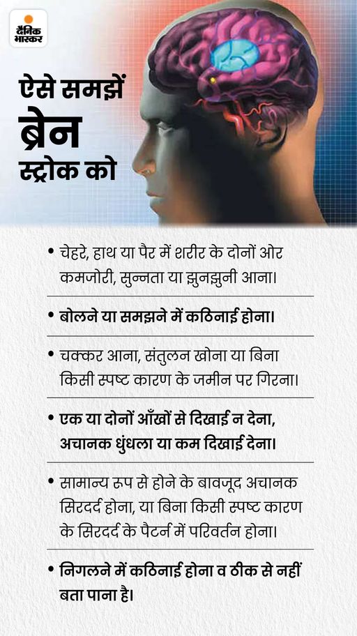 आज ‘वर्ल्ड स्ट्रोक डे’ है। इस साल की थीम है ‘हर मिनट मायने रखता है’ यानी ब्रेन स्ट्रोक के लक्षणों को पहचाने और तुरंत (Golden Hours) में इलाज कराएं ताकि जल्दी रिकवरी हो सके। इससे ब्रेन को नुकसान कम होने के साथ जीवित रहने की संभावनाएं बढ़ जाती है। वैसे