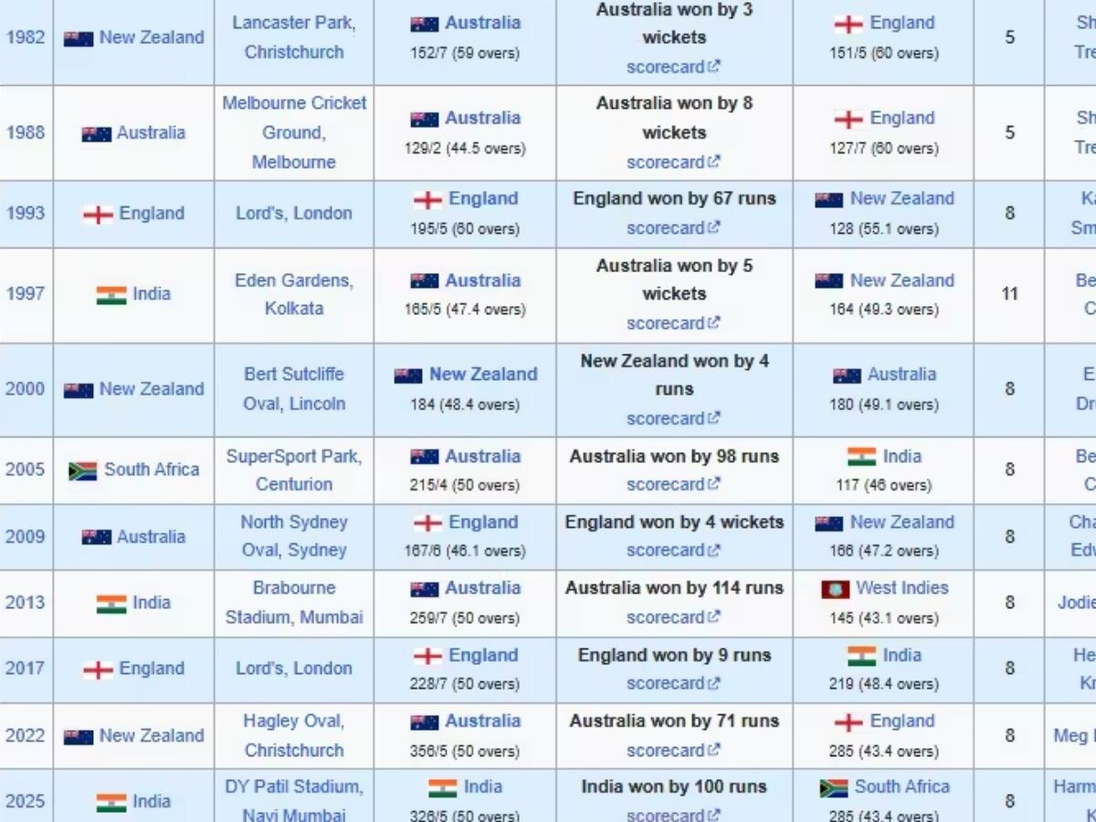 Women’s World Cup Final 2025: भारत ने ऑस्ट्रेलिया को हराकर महिला विश्व कप 2025 के फाइनल में जगह बनाई, किसी शरारती यूजर ने विकिपीडिया पर पहले ही भारत की साउथ अफ्रीका पर 100 रन से जीत को अपडेट कर दिया.