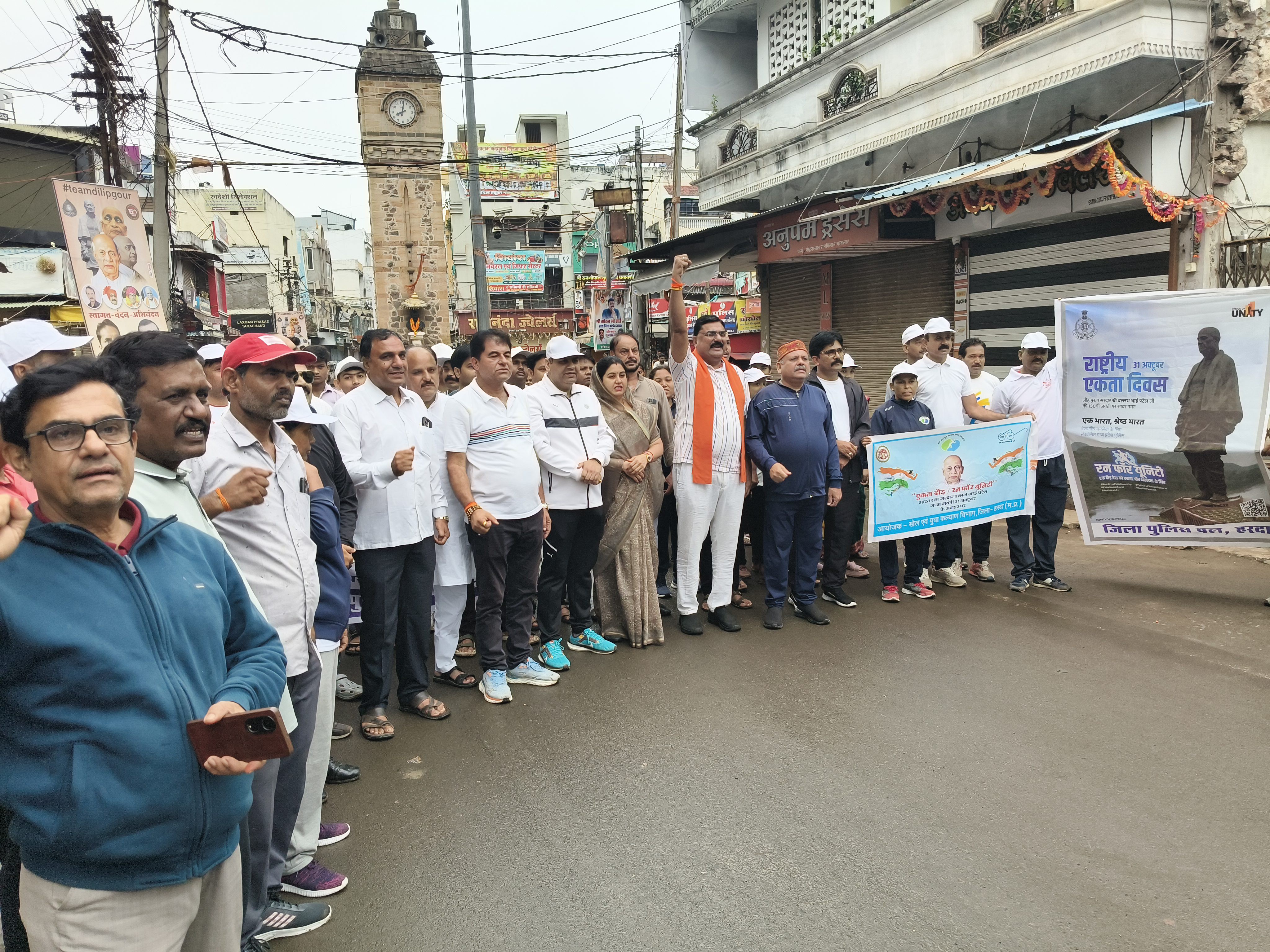 एसपी शशांक ने ‘‘रन फॉर यूनिटी’’ को हरी झंडी दिखाकर रवाना किया। सहभागी प्रतिभागियों ने नारायण टॉकीज चौक, अंबेडकर चौक, परशुराम चौक से होते हुए बड़ी सिंधी कॉलोनी मार्ग से उत्कृष्ट विद्यालय तक दौड़ लगाई। कार्यक्रम के समापन पर सभी प्रतिभागियों ने राष्ट्रीय एकता की शपथ भी ली।