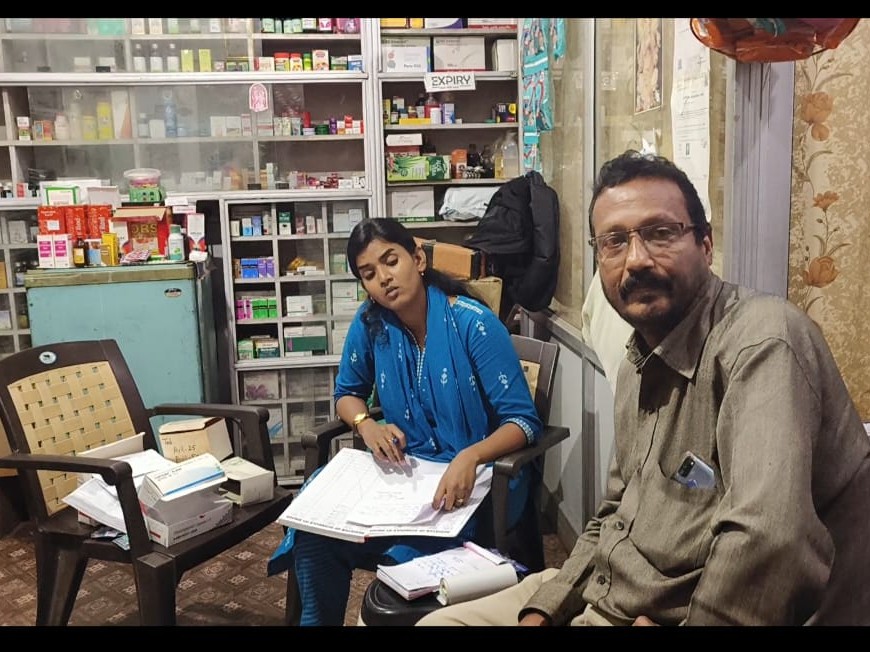 मेडिकल स्टोर पर जांच करती औषधि निरीक्षक टीम