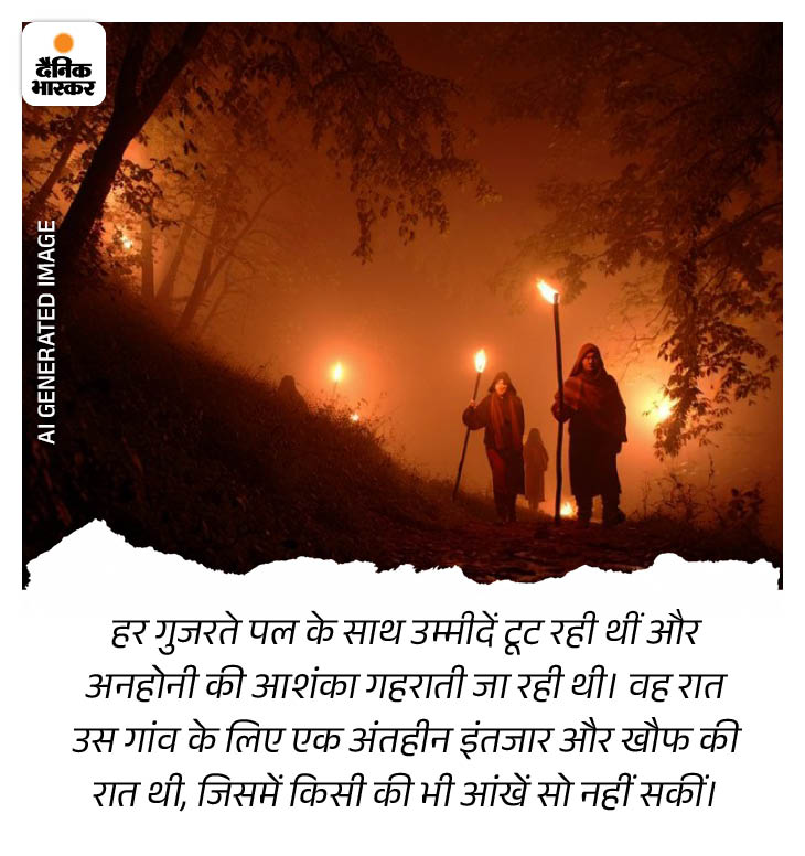 पूरा गांव परिवार के दुख में शामिल हो गया। रात के अंधेरे में, हाथों में मशालें लिए, गांव वाले पास के जंगलों की खाक छानते रहे।