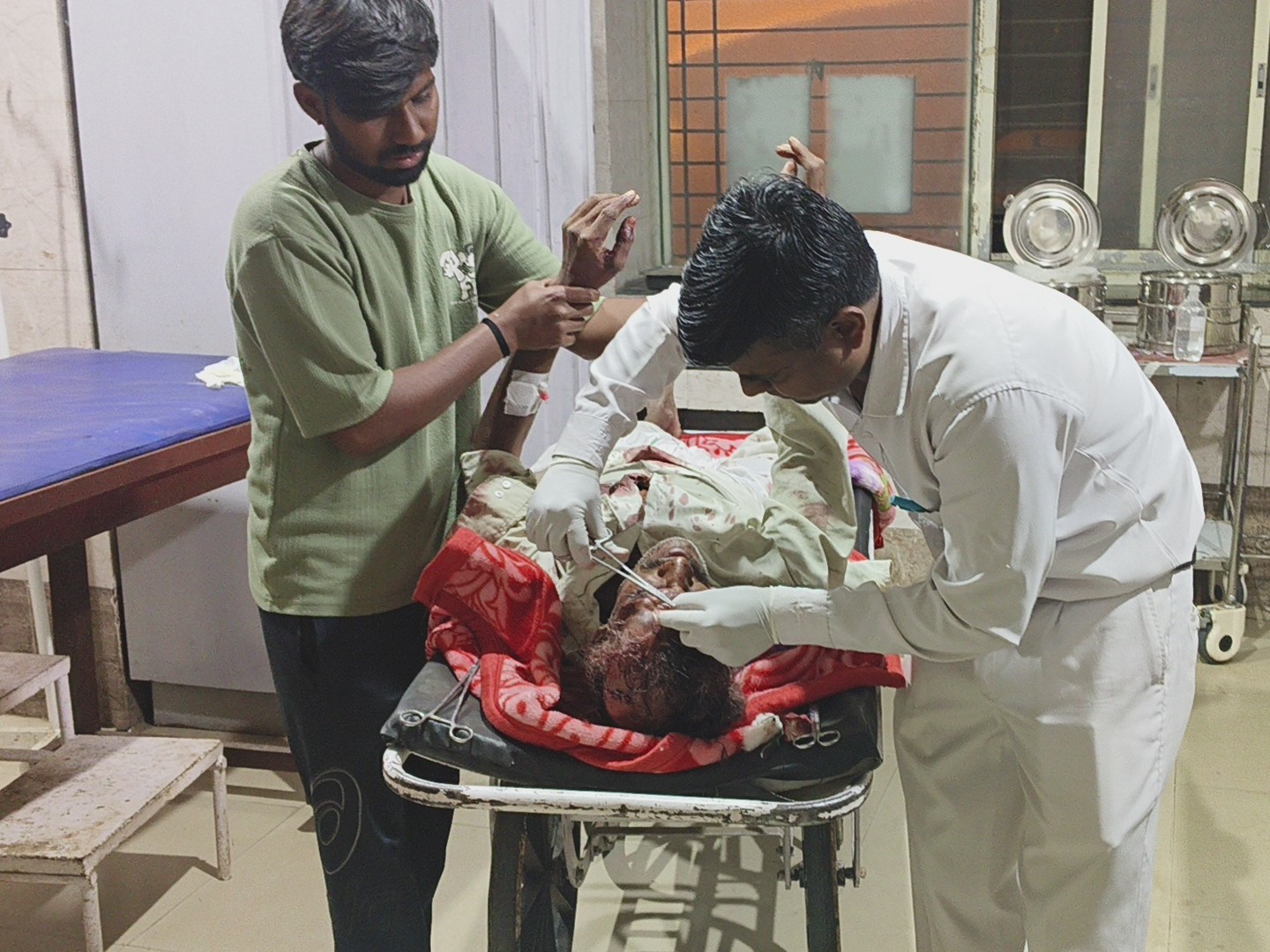 जिला चिकित्सालय से मिली जानकारी के अनुसार, इस विवाद में रावतपुरा निवासी 60 वर्षीय देवीलाल पिता किशनलाल किर गंभीर रूप से घायल हुए हैं। उनके सिर में गंभीर चोट आई है, जिसके चलते उन्हें जिला चिकित्सालय में भर्ती कर उपचार किया जा रहा है। उनके सिर में करीब 35 टांके आए हैं।