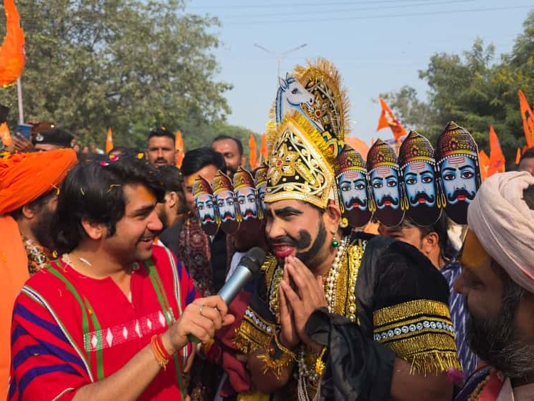 यात्रा के दौरान रावण के वेश में एक युवक “जय श्री राम” के नारे लगाता दिखाई दिया।
