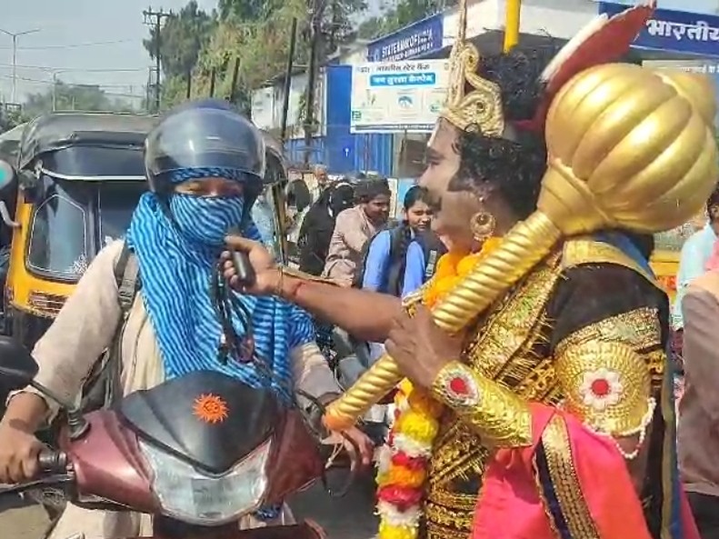 बुरहानपुर में समाजसेवी राजेश मावले ने सोमवार को यमराज का वेश धारण कर शहर में जागरूकता अभियान चलाया। उन्होंने शनवारा चौराहा और लोधीपुरा रोड पर लोगों से बाइक चलाते समय हेलमेट पहनने और चार पहिया वाहन चलाते समय सीट बेल्ट लगाने की अपील की।