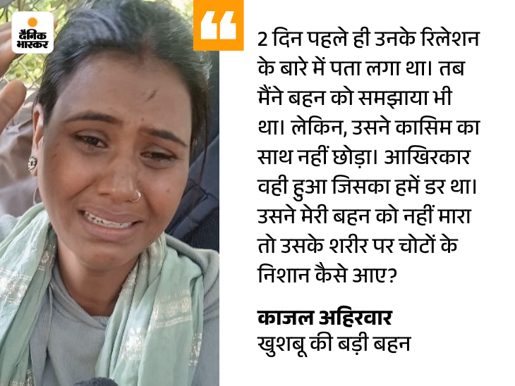 कासिम के दोस्त की पत्नी से बहन का विवाद हुआ था खुशबू की बड़ी बहन काजल अहिरवार ने बताया कि हमारे पिता का निधन हो चुका है। हम तीन बहनों में खुशबू सबसे छोटी थी। 2 महीने पहले लटेरी में रहने वाले कासिम के एक दोस्त की पत्नी से बहन का विवाद हुआ था, तब कासिम ने ही मेरी बहन से मारपीट की थी।