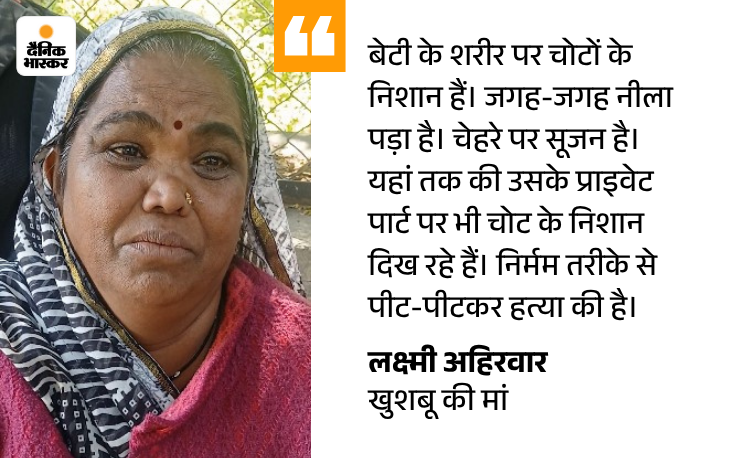 कासिम ने अस्पताल में भर्ती कराया, रिकॉर्ड में दोस्त बताया खुशबू की मां ने कहा- पुलिस बता रही है कि दोनों उज्जैन से भोपाल आ रहे थे। रास्ते में बेटी की तबीयत बिगड़ी तो कासिम ही उसे अस्पताल लेकर पहुंचा। बेटी को बेसुध देखने के बाद वह भाग गया। हमें इंसाफ चाहिए, बेटी की हत्या करने वाले को सख्त सजा मिलना चाहिए।