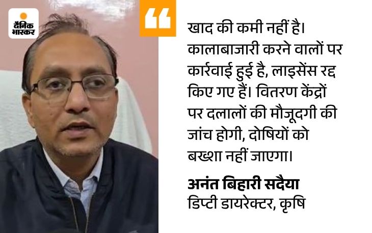 हाल ही में कलेक्टर लोकेश कुमार रामचंद्र जांगिड़ के द्वारा खाद वितरण केंद्रों का निरीक्षण कर मैन्युअल पर्ची प्रतिबंधित कर मशीन की पर्ची दिए जाने के निर्देश देते हुए । ब्लैक में खाद बेच रहे दो खाद रिटेलर्स पर एफआईआर कर लाइसेंस कैंसिल किए थे । फिर भी खाद की कालाबाजारी नहीं रुक रही । अधीनता अधिकारियों की मिलीभगत से खाद की कालाबाजारी हो रही है ।