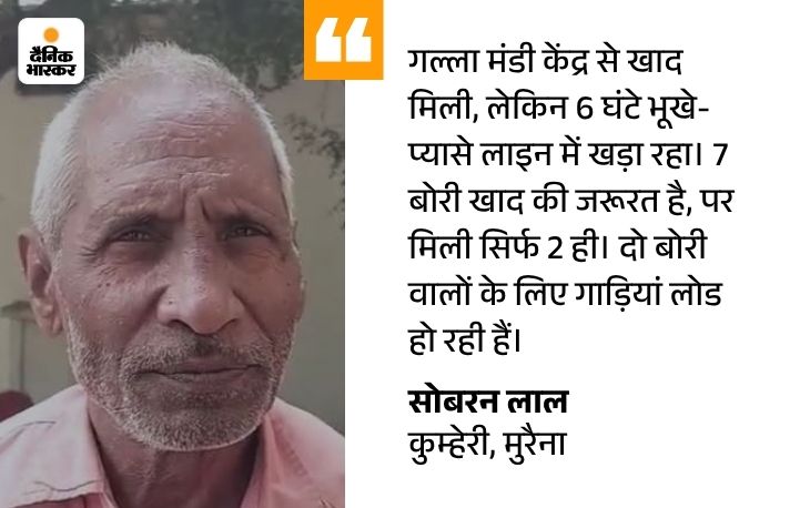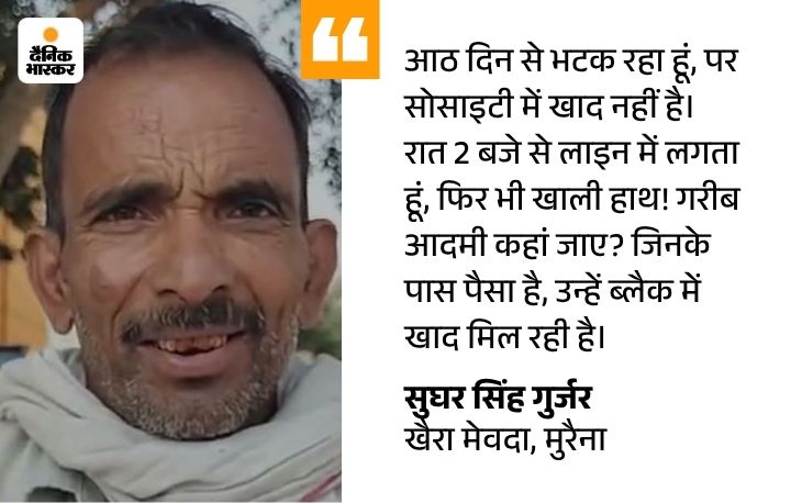 मुरैना जिले में खाद के लिए किसानों की परेशानी कम होने का नाम नहीं ले रही है। अन्नदाता रात से सुबह और फिर सुबह से शाम तक खाद वितरण केंद्रों के चक्कर काट रहे हैं। किस्मत वाले किसानों को दो बोरी खाद मिल जाती है, नहीं तो उन्हें अगली सुबह के लिए फिर से ला