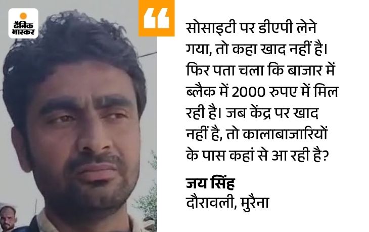 खाद की कालाबाजारी जमकर हो रही है, जबकि किसानों को नहीं दिया जा रहा है।