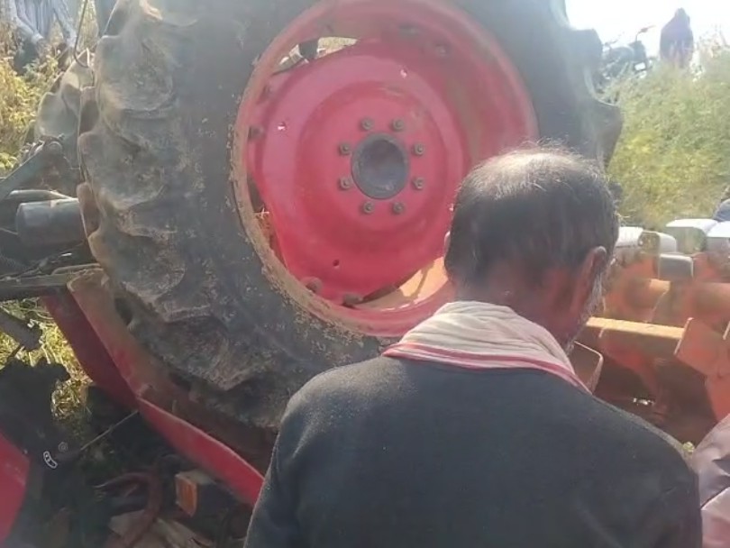 पलटे हुए ट्रैक्टर के नीचे फंसा किसान।