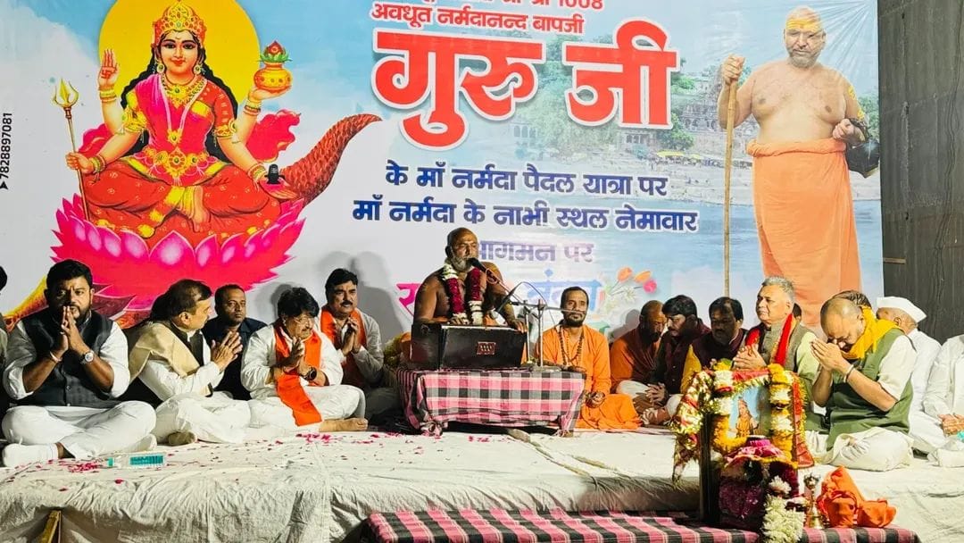 श्री श्री 1008 अवधूत नर्मदानंद बापजी के नेतृत्व में चल रही राष्ट्र समर्पित नर्मदा प्रदक्षिणा सेवा यात्रा गुरुवार को नेमावर पहुंची। यह यात्रा नर्मदा संरक्षण, सेवा, धर्म और राष्ट्र जागरण का संदेश लेकर आगे बढ़ रही है।