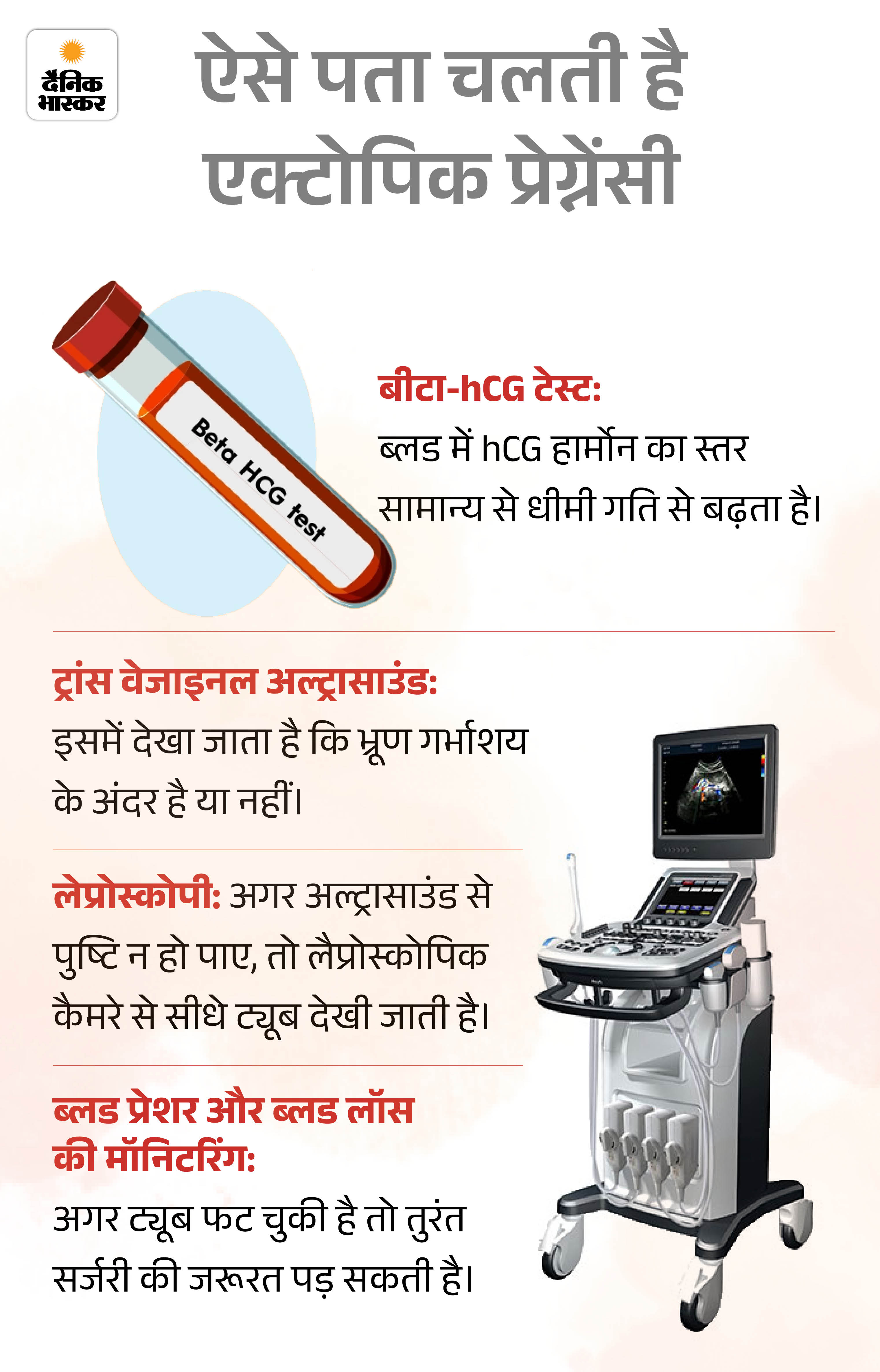 इधर हताश युवती जैसे ही अस्पताल से बाहर जाने के लिए मुड़ी, वह अचानक बेहोश होकर गिर पड़ी। यह देखकर डॉक्टर तुरंत समझ गए कि मामला सामान्य नहीं है। उन्होंने बिना देर किए उसकी सोनोग्राफी करवई। जांच में पता चला कि युवती का भ्रूण गर्भाशय में नहीं, बल्कि फैलोपियन ट्यूब में विकसित हो रहा था।