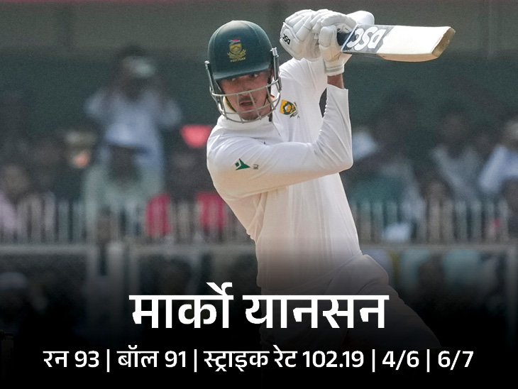 यानसन ने शाहीद अफरीदी की बराबरी की मार्को यानसन ने 93 रन की पारी में 7 छक्के लगाए। वे भारत के खिलाफ एक पारी में सबसे ज्यादा सिक्स लगाने के रिकॉर्ड में शाहिद अफरीदी की बराबरी पर पहुंच गए। अफरीदी ने 2006 में लाहौर के मैदान पर 7 सिक्स लगाए थे। पढ़ें पूरी खबर…