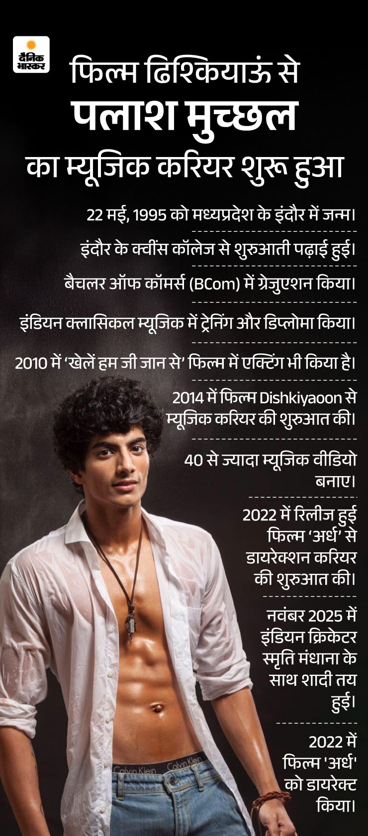 गाने कंपोज करने के अलावा पलाश मुच्छल ने एक्टिंग भी की है। वो आशुतोष गोवारिकर की फिल्म खेले हम जी जीन से में झुनकू के किरदार में नजर आ चुके हैं। ये फिल्म साल 2010 में रिलीज हुई थी।