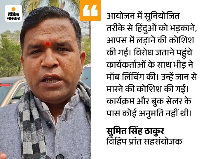 विहिप के सहसंयोजक सुमित सिंह ठाकुर ने बताया कि रविवार को मानस भवन में आयोजित कार्यक्रम के लिए न तो आयोजकों और न ही बुक सेलर के पास कोई अनुमति थी। इसके बावजूद वहां खुले रूप से भगवानों के खिलाफ आपत्तिजनक सामग्री वाली किताबें बेची जा रही थीं। उन्होंने कहा कि हिंदू समाज में शिवमहापुराण और गरुण पुराण जैसे ग्रंथों को आदर और श्रद्धा के साथ रखा जाता है, ये पुराण सनातन काल से हमारी परंपरा का हिस्सा रहे हैं।