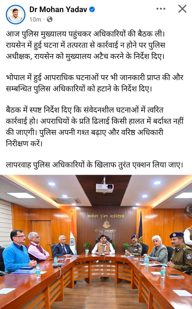 मुख्यमंत्री डॉ. मोहन यादव के पास गृह विभाग का प्रभार भी है. न्यूज़ 18 को पहले ही विश्वसनीय सूत्रों से इनपुट मिल गया था कि सीएम इस मामले में बहुत गुस्से में हैं और जल्द ही बड़ा एक्शन लेंगे. चैनल की खबरों के बाद सीएम कार्यालय और गृह विभाग से भी फोन आकर पूरी जानकारी ली गई थी. आखिरकार देर रात आदेश जारी हुआ और एसपी साहब को हटा दिया गया.
