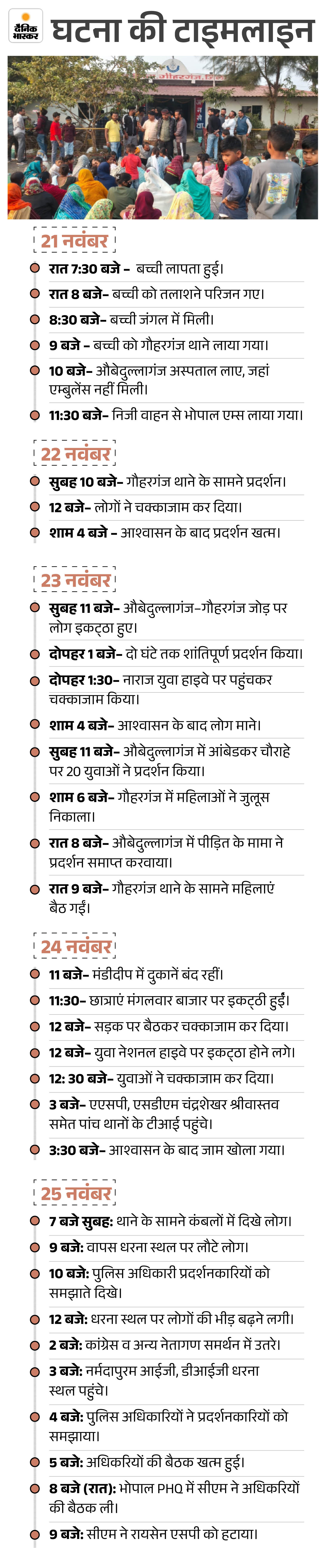 बच्ची से हुई दरिंदगी के बाद से ग्रामीणों में भारी आक्रोश है। बीते तीन दिनों से धरना जारी है और आरोपी की गिरफ्तारी की मांग तेज होती जा रही है। कई सामाजिक संगठन भी आंदोलन में शामिल हो गए हैं। लोगों की मांग है- गिरफ्तारी हो या फिर एनकाउंटर।