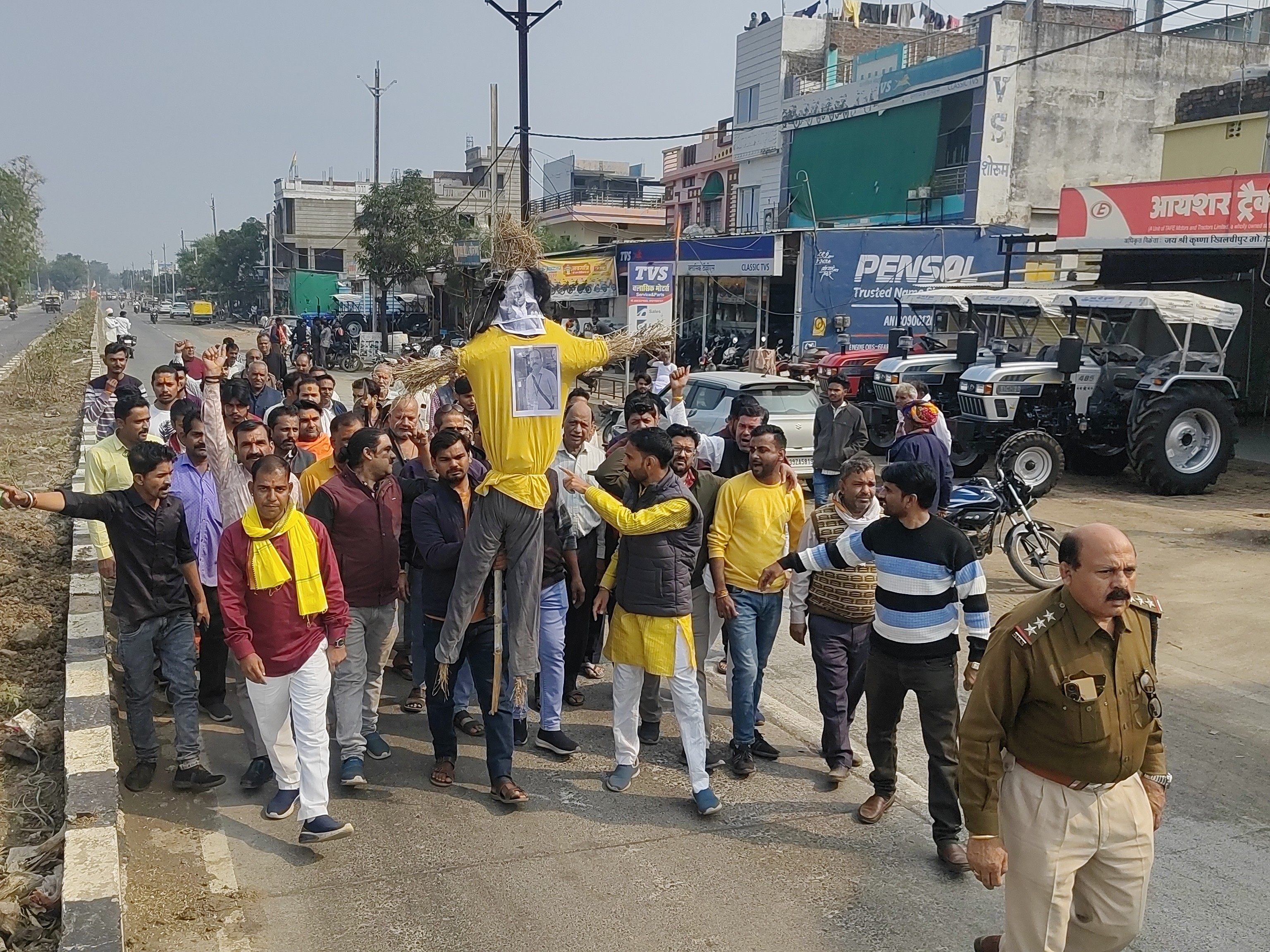 चौराहे पर गुस्से से भरे लोगों ने IAS संतोष वर्मा का पुतला जलाकर विरोध दर्ज कराया। पुतला दहन के बाद सभी समाजजन खिलचीपुर थाने पहुंचे, जहां पहले सामूहिक रूप से हनुमान चालीसा का पाठ किया गया। इसके बाद टीआई उमाशंकर मुकाती को ज्ञापन देकर वर्मा पर FIR दर्ज करने की मांग की गई।