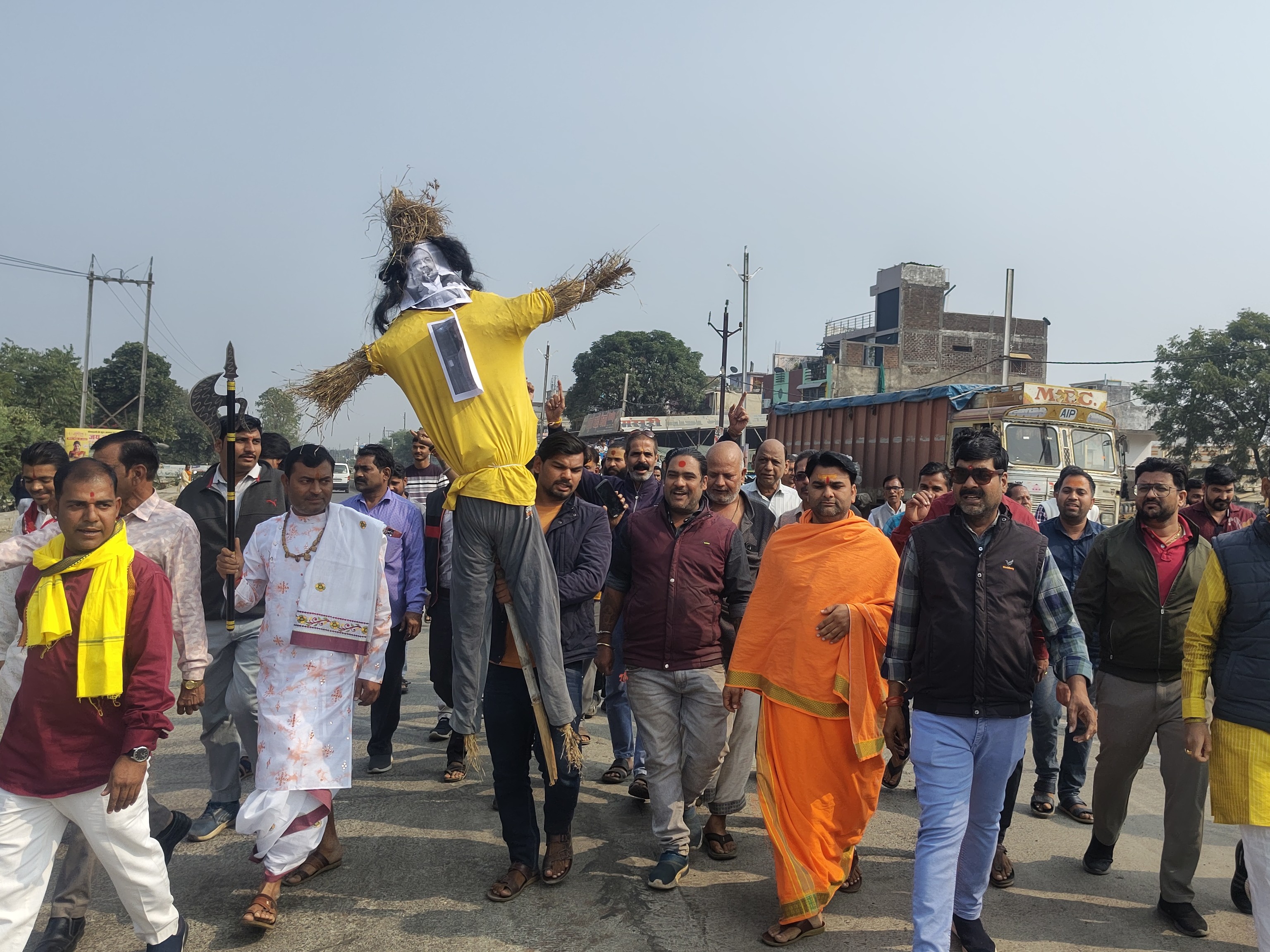 गुरुवार दोपहर गायत्री मंदिर पर समाजजन बड़ी संख्या में जुटे और ब्राह्मण समाज के अध्यक्ष सतीश शर्मा के नेतृत्व में रैली निकाली। जिसमे संत बाबा पागल दास महाराज, कथा वाचक पंडित रोहित नागर सहित सैकड़ों लोग “संतोष वर्मा मुर्दाबाद” के नारों के साथ तहसीलदार चौराहे तक पहुंचे।