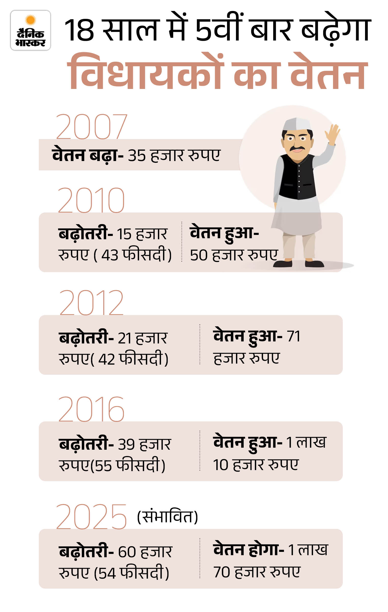 विधानसभा की सदस्य सुविधा समिति के अध्यक्ष नागेंद्र सिंह (गुढ़) ने वेतन बढ़ोतरी को लेकर मई के महीने में मुख्यमंत्री से मुलाकात की थी।