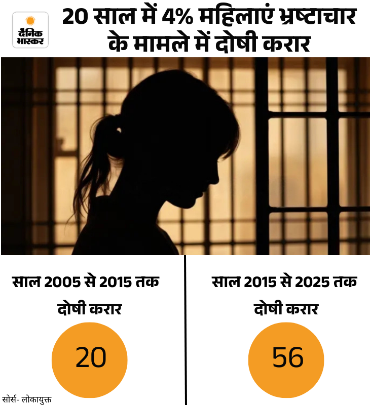 हर साल कितनी महिला कर्मचारी भ्रष्टाचार के मामलों में पकड़ी जाती है? ईओडब्ल्यू और लोकायुक्त ऐसा कोई रिकॉर्ड नहीं रखते, लेकिन भास्कर ने लोकायुक्त की पिछले 20 सालों की कार्रवाई का एनालिसिस किया तो पाया कि पिछले एक दशक में रिश्वत के मामलों में दोषी करार दिए जाने वाले मामलों में महिलाओं की संख्या तीन गुना हो चुकी है।