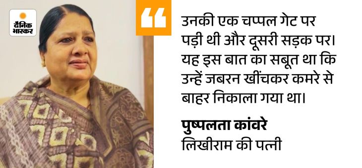 लिखीराम कांवरे की पत्नी पुष्पलता कांवरे बताती हैं कि उन्हें अनहोनी का अंदाजा हो गया था।