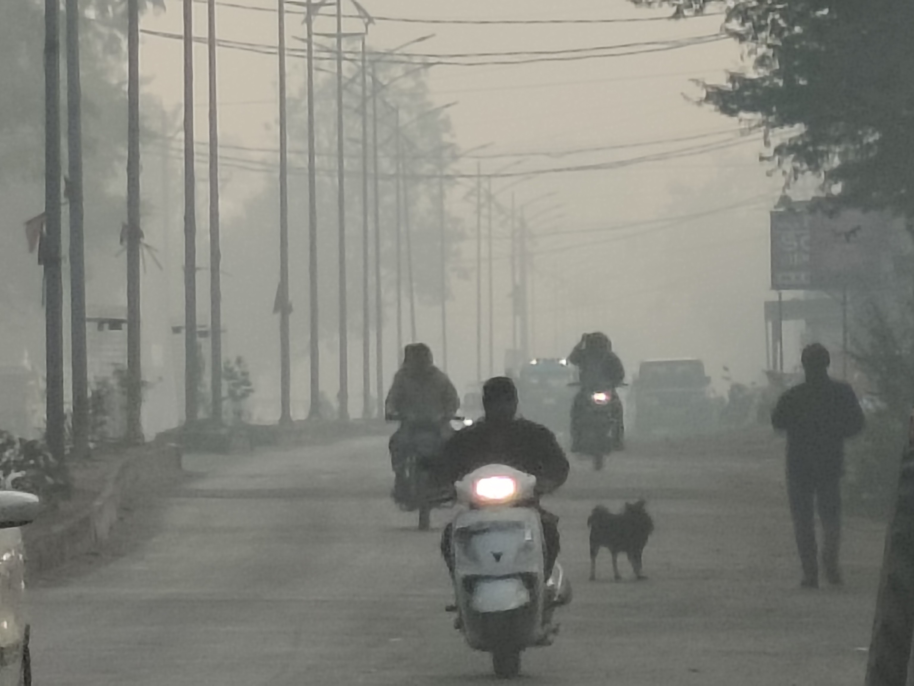 कड़ाके की ठंड की वजह से विजिबिलिटी में कमी।