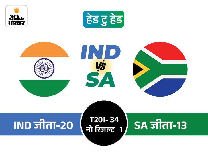 साउथ अफ्रीका के खिलाफ भारत आगे भारत और साउथ अफ्रीका के बीच अब तक कुल 34 टी-20 इंटरनेशनल मुकाबले खेले जा चुके हैं। इनमें से टीम इंडिया ने 20 मैचों में जीत दर्ज की है, जबकि साउथ अफ्रीका को 13 मुकाबलों में सफलता मिली है। दोनों टीमों के बीच एक मैच बेनतीजा रहा है।