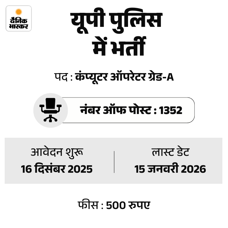 उत्तर प्रदेश पुलिस भर्ती और प्रोन्नति बोर्ड (UPPRPB) ने यूपी पुलिस विभाग में कंप्यूटर ऑपरेटर ग्रेड-A पदों पर भर्ती निकाली है। उम्मीदवार भर्ती बोर्ड की ऑफिशियल वेबसाइट uppbpb.gov.in पर नोटिफिकेशन चेक कर सकते हैं।