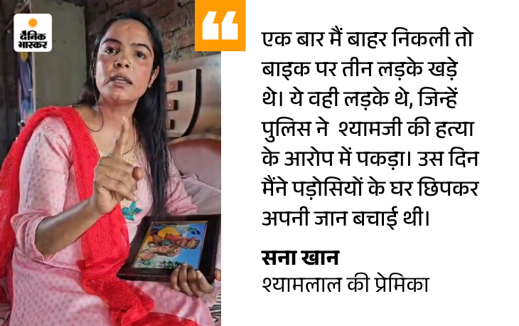 उस दिन कॉल नहीं आया। सुबह पता चला कि उनकी हत्या हो गई है। मेरा तो दुनिया ही उजड़ गई। मैं उनके घर जाने के लिए निकली, लेकिन लोगों ने मुझे रोक दिया। मैं दिन भर रोती रही। समझ नहीं आ रहा था कि कल जो इंसान मेरे साथ था, आज वह इस दुनिया में नहीं है। सना ने बताया कि श्यामलाल के पिता दौलतराम ने मेरी हत्या की भी सुपारी दी थी। दो बार मेरे घर पर हमला हुआ था।