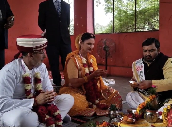 निवाड़ी जिले के ओरछा स्थित बेत्रवेश्वर महादेव मंदिर में रविवार को एक विदेशी जोड़े ने हिंदू रीति-रिवाजों से विवाह किया। इटली के चीरो और फ्रांस की ओद्रा ने भारतीय परंपराओं के अनुसार अग्नि को साक्षी मानकर सात फेरे लिए।