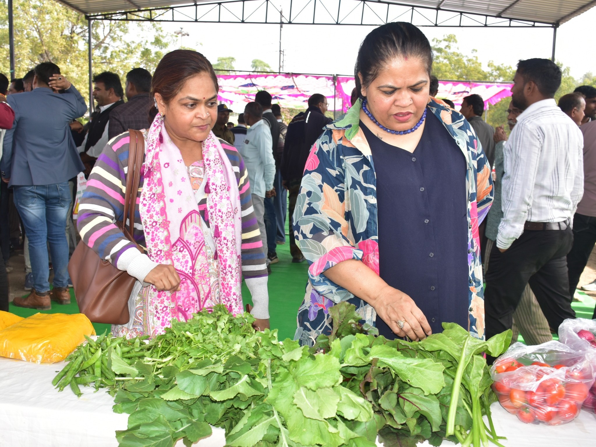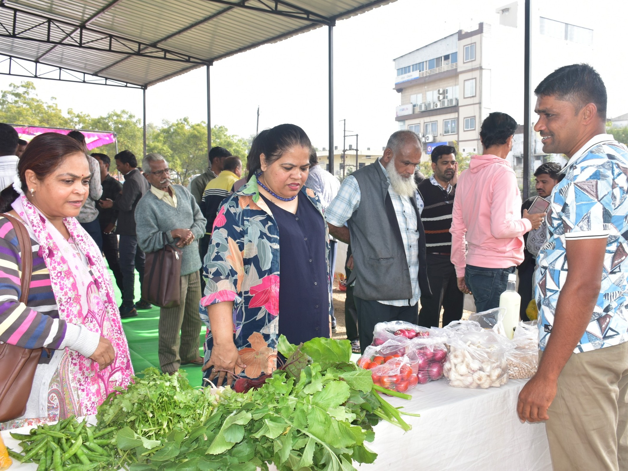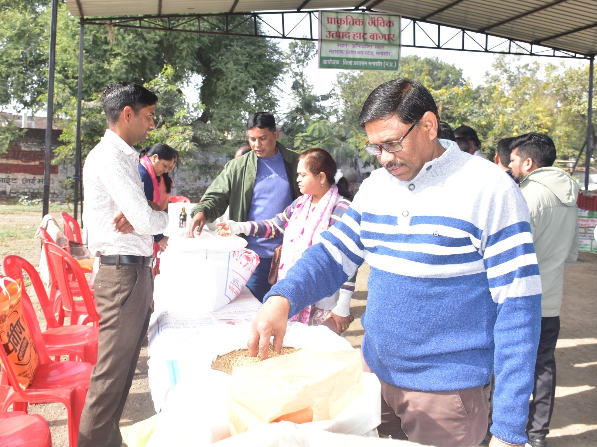 हाट बाजार में जिले के 33 किसानों ने अपने स्टॉल लगाए। यहां मटर, पालक, मेथी, टमाटर, हरा धनिया, मूंगफली, पपीता, संतरा, अमरूद, गेहूं, मक्का, ज्वार, चना, काबुली चना, किनोवा, चिया सीड, कुसुम करडी, केंचुआ खाद, हल्दी, अश्वगंधा, शहद, घी, जीवामृत और बीजामृत जैसे अनेक जैविक उत्पाद उपलब्ध हैं।
