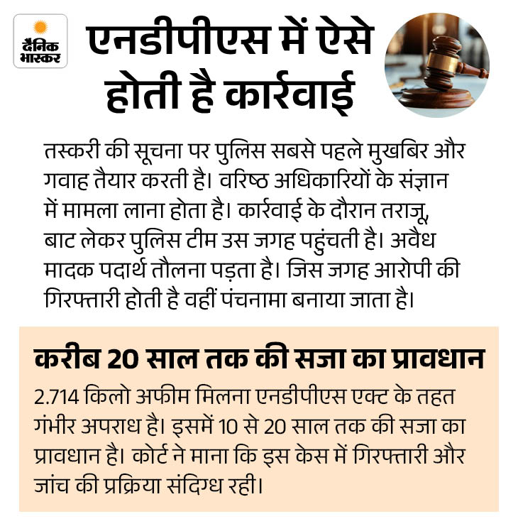 पुलिस के मुताबिक स्टूडेंट कोरियर बॉय बनकर अफीम की डिलीवरी करने आया था और उसके खिलाफ कॉल डिटेल व सीसीटीवी फुटेज जैसे सबूत मौजूद हैं। लेकिन गिरफ्तारी को लेकर पुलिस द्वारा दी गई एक गलत जानकारी ने पूरे मामले की दिशा बदल दी। बस से जबरन उतारे जाने का वीडियो सामने आते ही हाईकोर्ट ने पुलिस को कठघरे में खड़ा कर दिया। नतीजा यह हुआ कि थाना प्रभारी समेत 6 पुलिसकर्मी सस्पेंड हो गए। अब यह मामला तस्करी से ज्यादा सिस्टम की खामियां बयां कर रहा है। दैनिक भास्कर की यह रिपोर्ट पढ़िए…