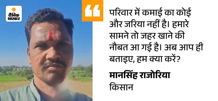 मानसिंह बोला- अब जहर खाने की नौबत आ गई जब हमारी टीम मानसिंह के खेत पर पहुंची, तो उनके साथ उनके बुजुर्ग पिता रामलाल राजोरिया और मां गीताबाई भी थे। बंजर पड़े खेत को दिखाते हुए मानसिंह की आंखें भर आईं। उसने कहा, ‘यह देखिए, तीन साल से यहां कोई फसल नहीं हुई। जुताई के लिए ट्रैक्टर चाहिए, लेकिन उसे लाने का रास्ता कहां है? खेत के सामने 15 फीट की दीवार (फेंसिंग) खड़ी कर दी है। आप ही बताइए, हम ट्रैक्टर लेकर कैसे जाएं?’