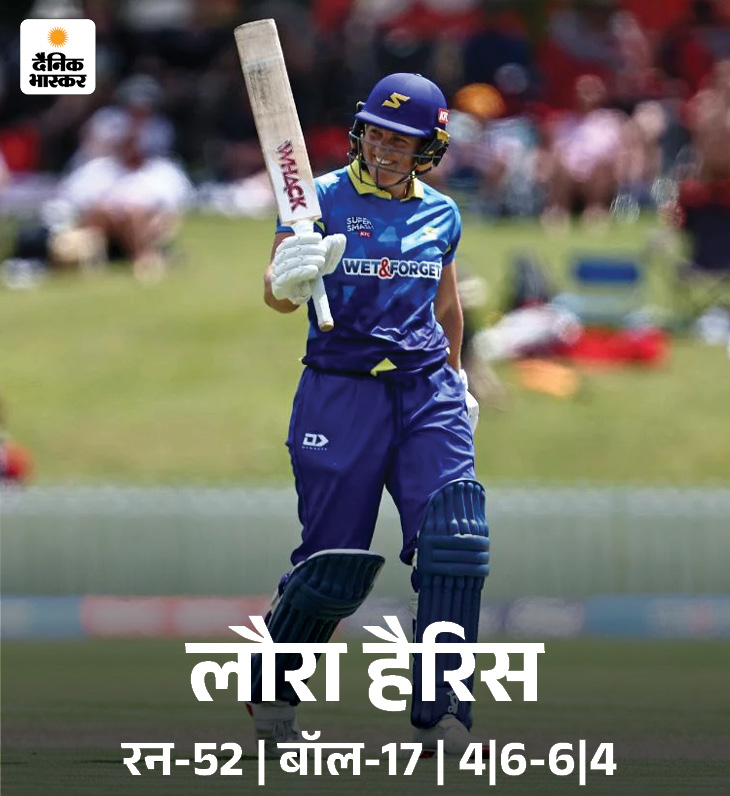 रविवार को एलेक्जेंड्रा के मोलिन्यू पार्क में खेले गए मुकाबले में ओटागो को जीत के लिए 146 रन का लक्ष्य मिला था। टीम ने 6 ओवर में 46 रन पर दो विकेट गंवा दिए थे। ऐसे समय में लौरा हैरिस क्रीज पर उतरीं और आक्रामक बल्लेबाजी से मैच का रुख बदल दिया।