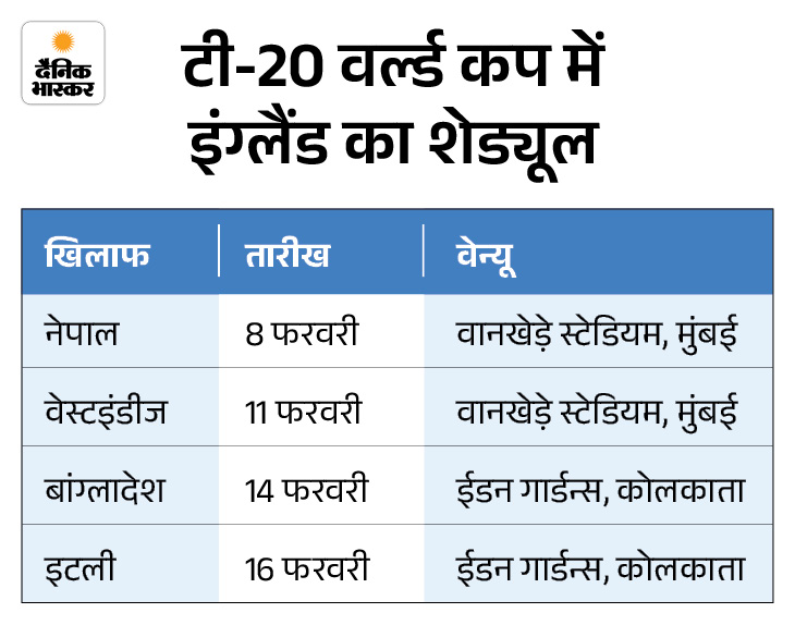 22 जनवरी से शुरू होगा श्रीलंका दौरा श्रीलंका दौरे पर इंग्लैंड को तीन वनडे और तीन टी-20 मैच खेलने हैं। दौरा 22 जनवरी से शुरू होगा। वनडे टीम में जो रूट की वापसी हुई है, जिससे बल्लेबाजी को मजबूती मिलेगी। ECB के मुताबिक, यह सीरीज खिलाड़ियों को वर्ल्ड कप से पहले हालात में ढलने और सही संयोजन तय करने का अच्छा मौका देगी।